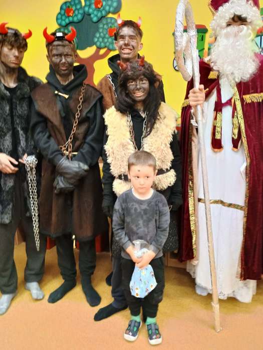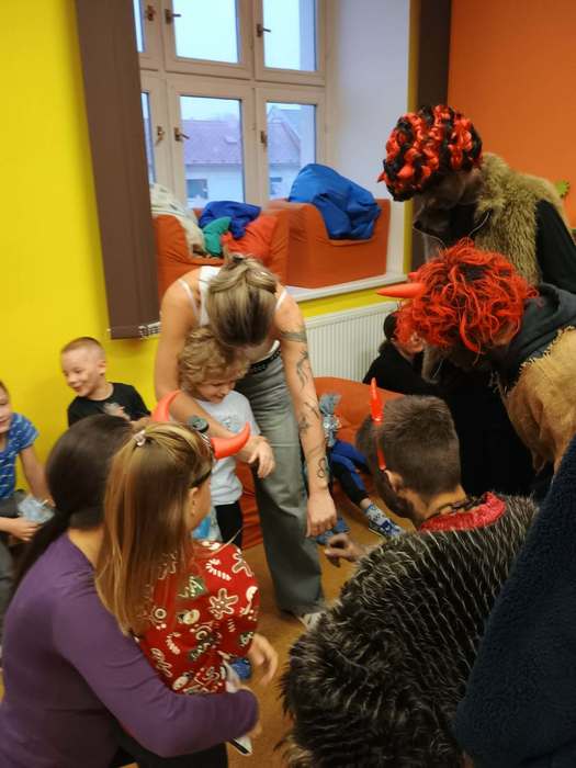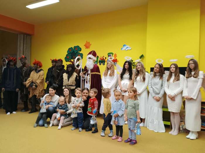 Dneska k nám zavítaly děti ze ZŠ, převlečeny za anděle, čerty a Mikuláše. Mikuláš měl připravenou knihu hříchů a pochval. Pochvalu dostala většina dětí a hříšníci přísahali na Mikulášskou berlu, že se polepší. Společně potom všechny děti zazpívaly písničky a poté byly Mikulášem a anděly odměněny balíčkem plných dobrot.