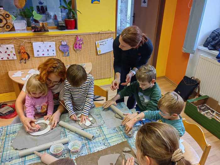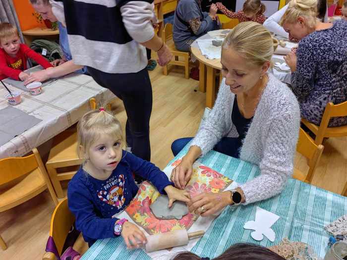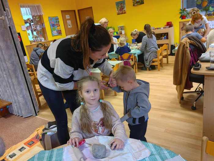 Ve čtvrtek 19.10. 2023 proběhly první keramické dílničky dětí s rodiči z oddělení Broučků a Mravenečků. Účast byla hojná a všem se výrobky moc povedly. :) Za měsíc se budeme těšit na dodělání výrobků. :)