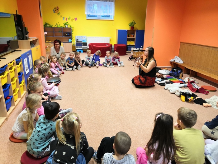 Dne 27.11.2024 se děti naší mateřské školy zúčastnily muzikodramatu paní Koudelkové. Dětem byla představena Eskymácká legenda Kouzelný dar ledního medvěda, vyzkoušely si hru na netradiční hudební nástroje a k příběhu si zazpívaly.