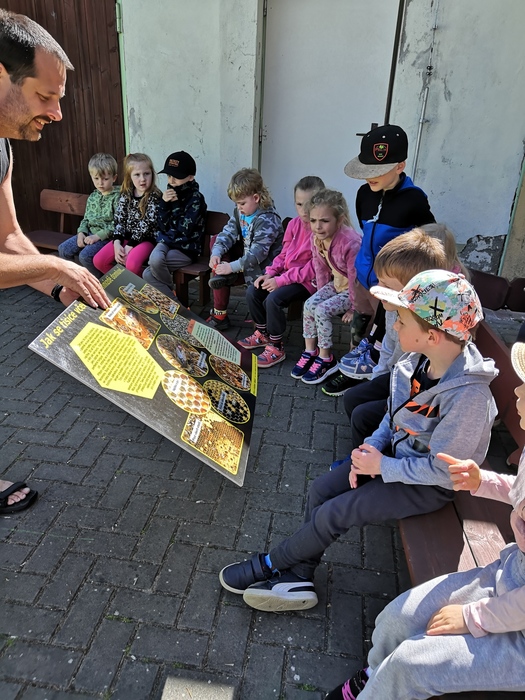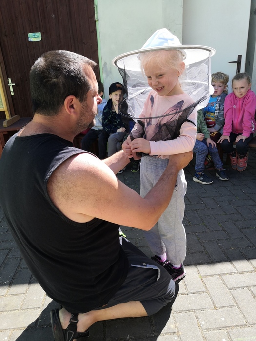 Dne 14.5.2024 za námi do mateřské školy přijel pan včelař. Dětem z oddělení motýlků, poté z oddělení včeliček připravil program s ochutnáváním medu, vysvětlením procesu vzniku medu, sledováním živých včel a včelí královny a samozřejmě nechybělo ani spoustu zajímavých informací o včeličkách.