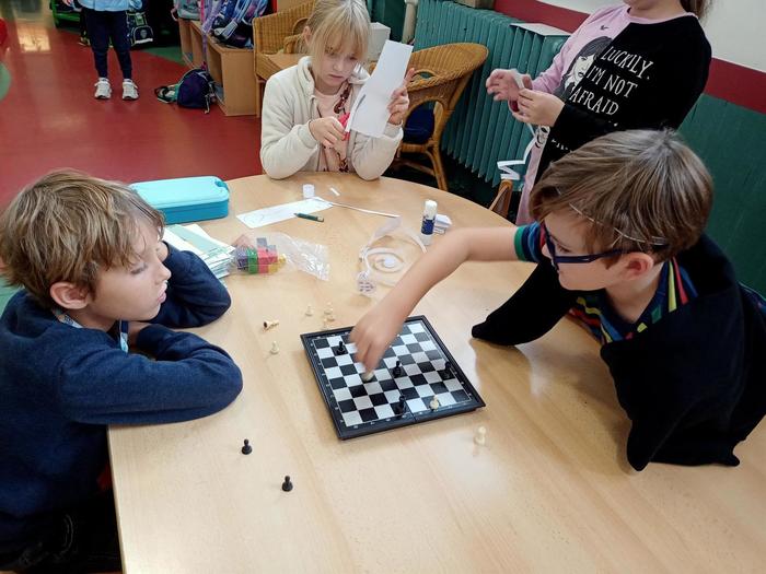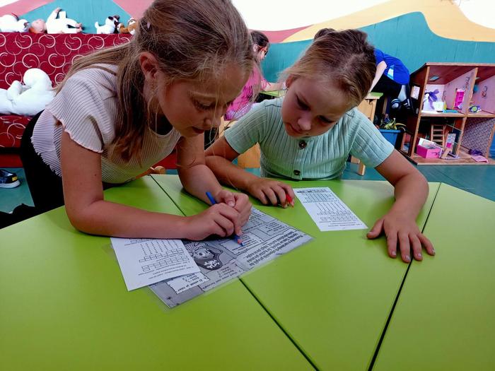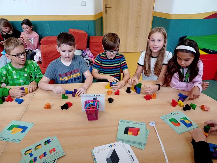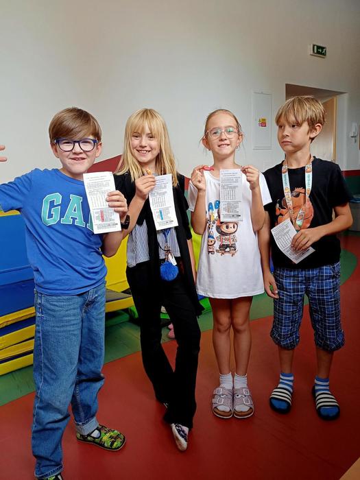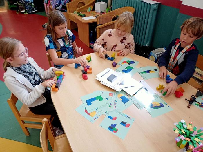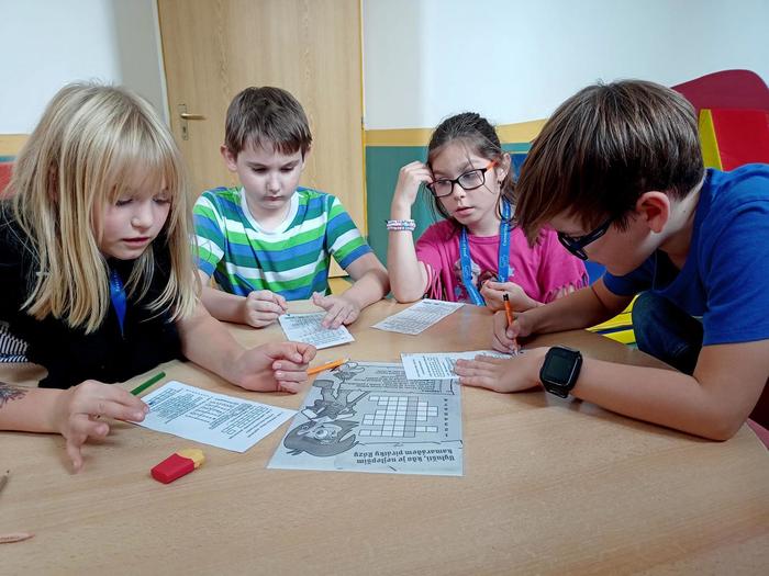 Když nám počasí nepřálo, přesunuli jsme se do pavilonu, kde jsme hráli karetní a deskové hry, řešili hlavolamy a hlavně tvořili – vyrobili jsme například tajenku z jmen spolužáků, zvířátka z papírových roliček nebo barevné náramky z bužírek.