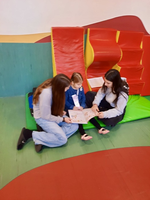Naši prvňáci byli svými patrony pasováni na čtenáře. Žáci deváté třídy donesli svým svěřencům slabikář s originální záložkou a v další půlhodině si vzájemně četli.