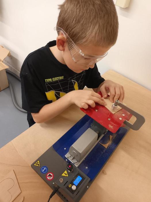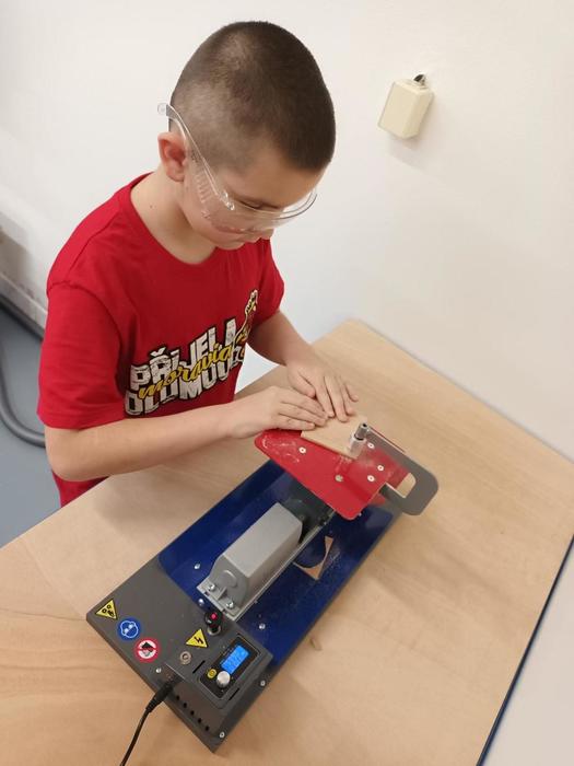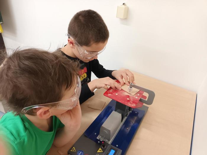 V kroužku Malý kutil chlapci ze 3. třídy vyrobili svým maminkám přívěsek – valentýnské srdíčko. Na stolní pile vyřezali tvar, smirkovým papírem upravili hrany, vrtačkou vyvrtali dírku na kroužek, a nakonec srdíčka vybarvili.