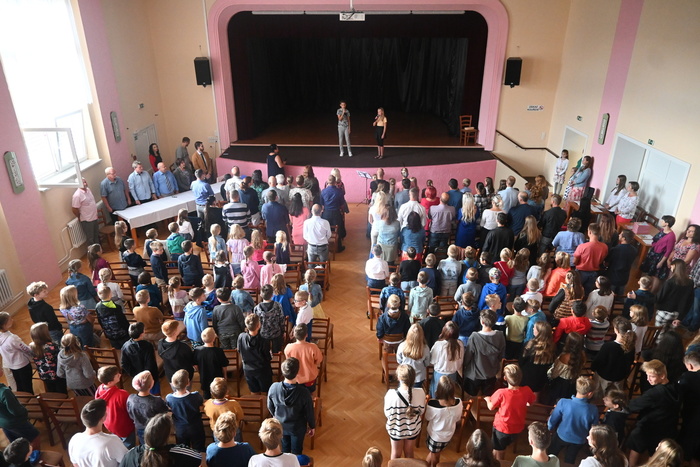 Ve čtvrtek 1. září proběhlo v Kulturním domě Hněvotín slavnostní zahájení školního roku. Pro nové prvňáčky to byl velký den, po slavnostním zahájení šli do školy a starší žáci udělali pro prvňáky slavobránu.